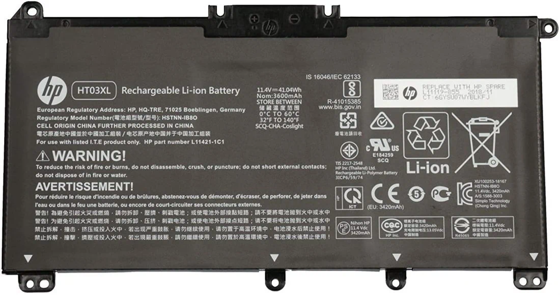 HSTNN-DB8R, HSTNN-DB8S, HSTNN-IB80, HSTNN-IB8O, HSTNN-LB8M, HSTNN-UB7J, HT03041XL, HT03XL, L11119-855, L11421-1C1, L11421-1C2, L11421-2C1, L11421-2C2, L11421-2C3, L11421-2D2, L11421-421, L11421-422, L11421-423, L11421-542, L11421-544, L11421-545